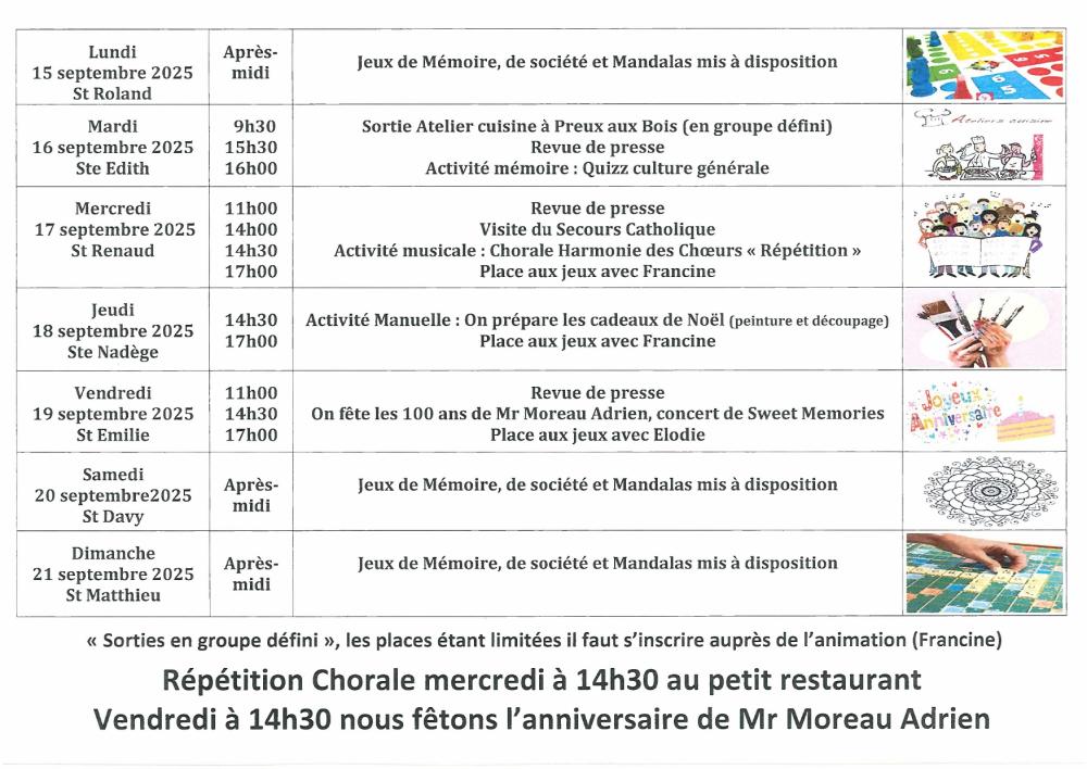 Vendredi à 14h30 nous fêtons le centième anniversaire de Mr Moreau Adrien avec le concert deAfficher la suite