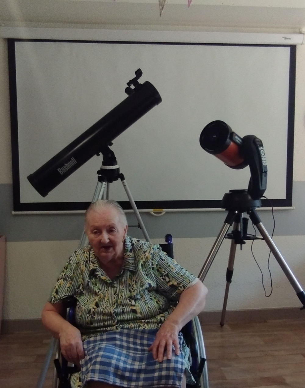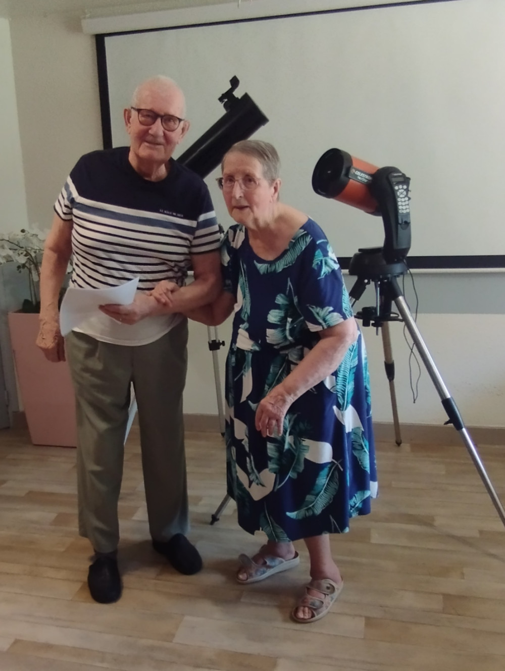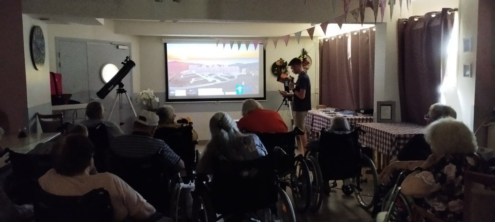 François, bénévole à la résidence nous a fait voyager bien au delà de notre galaxie avec son planétarium. De belles images... De bonnes explications... Avant une séance photo souvenir.