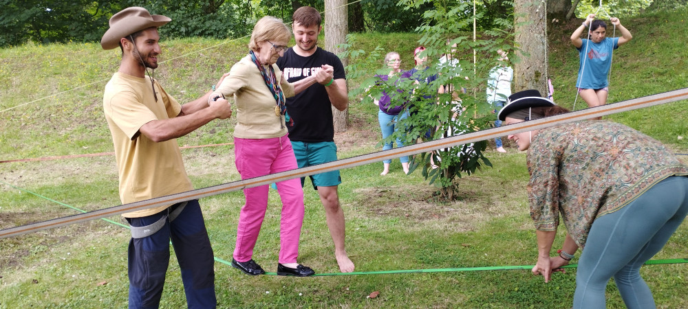 Marcher sur un fil!!! suspendu au dessus du vide... Les organisateurs du Slackline Festival nous ont invité à partager un moment de découverte et d'initiation pour les plus courageux suivi d'un moment plus festif ou nous avons chanté, dansé et partagé le verre de l'amitié. Magnifique après-midi entouré de personnes merveilleuses qui nous ont déjà invité pour l'an prochain.
