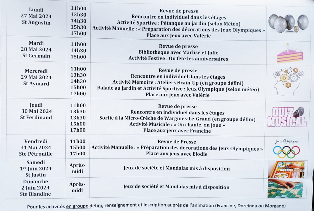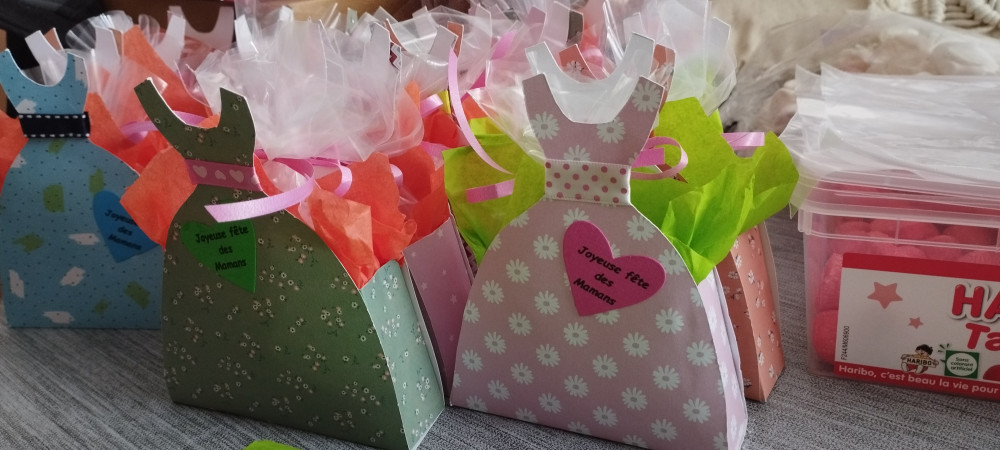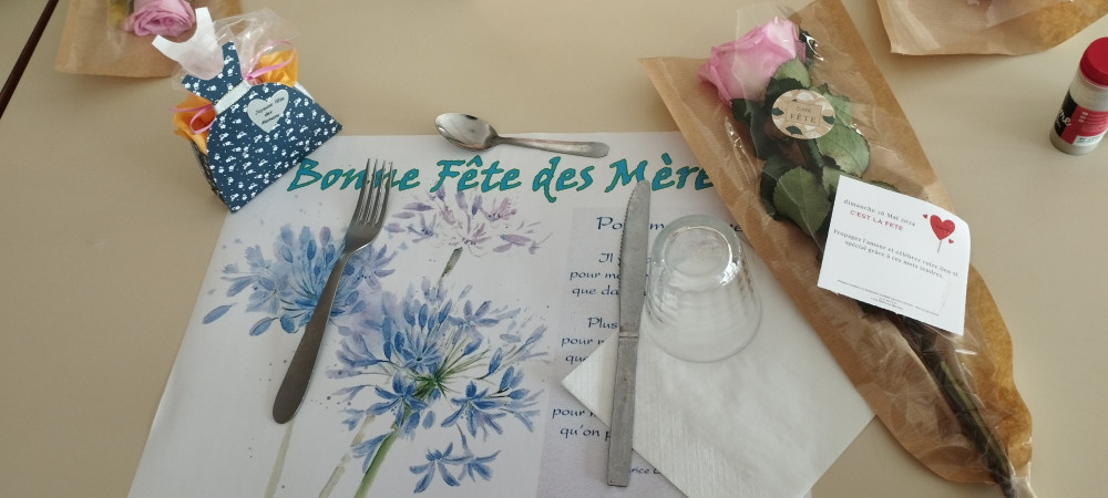 Ce 26 mai nos résidentes ont été gâtées : un jolie set de table, une jolie rose et une jolie robe garnie de douceurs sucrées (meringues et fraises Tagada).