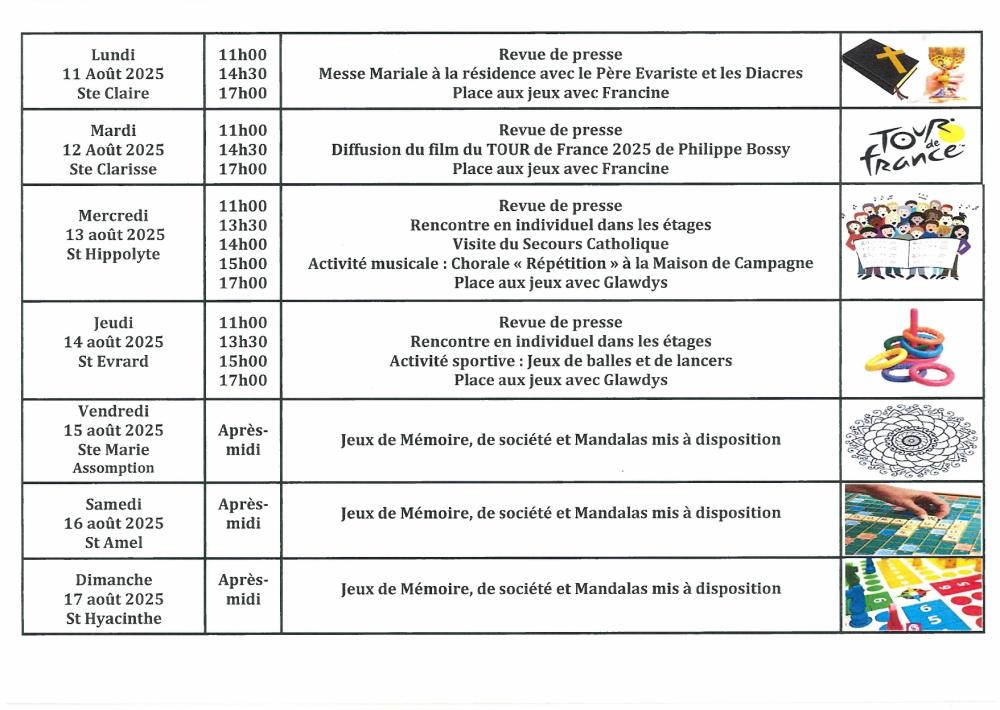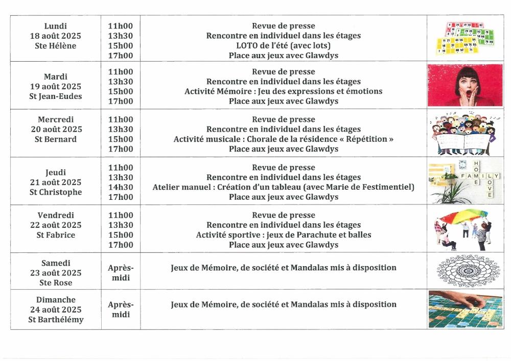 Francine est en congés du 13 août au 2 septembre inclus, elle est remplacée par Glawdys qui a fait son service civique à la résidence.