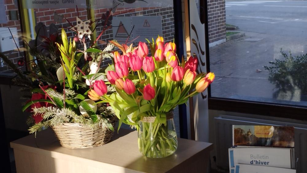 A la question "Que souhaitez vous faire pour la St Valentin ?" Réponse: " un film romantique ou d'amour et des Mon Chéri" Souhait exaucé, Quai des brumes et des Mon Chéri, tout pour passer un bel après-midi. Quelques tulipes ont coloré cette journée.