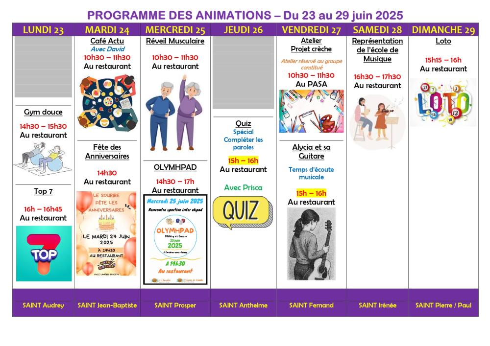 PROGRAMME DES ANIMATIONS - DU 23 au 29 juin 2025