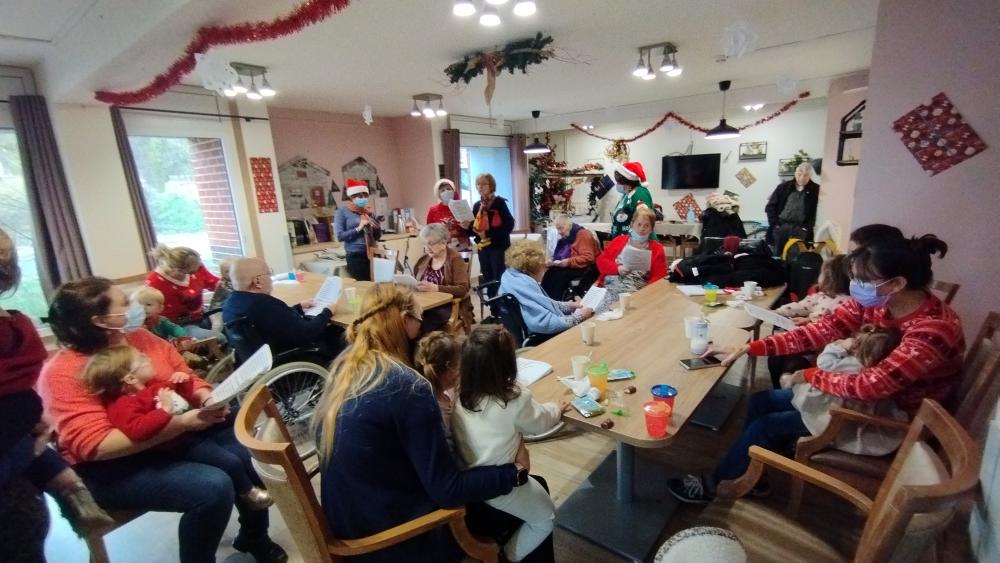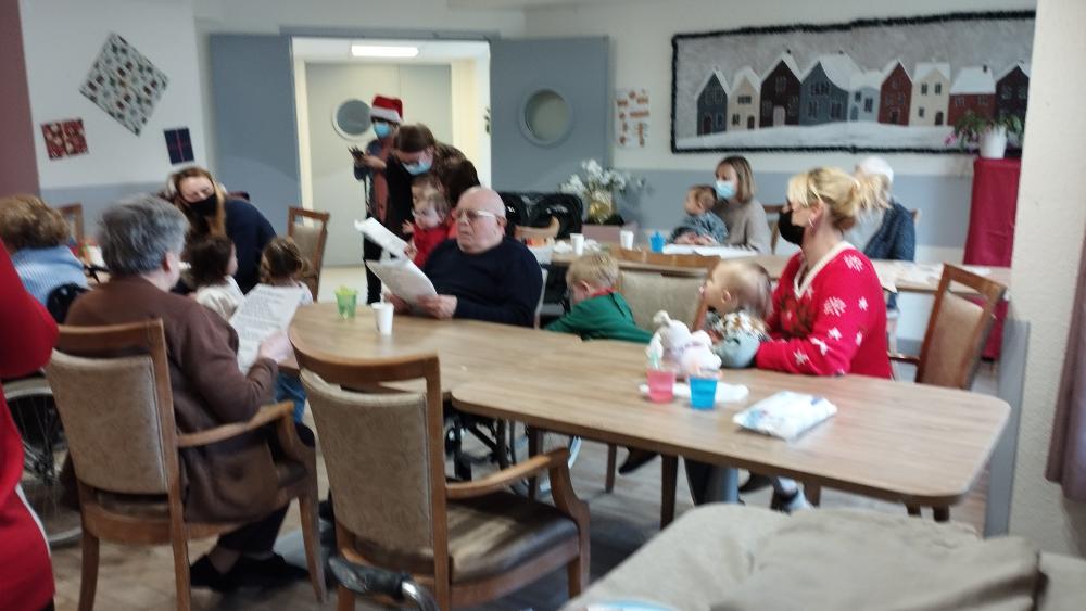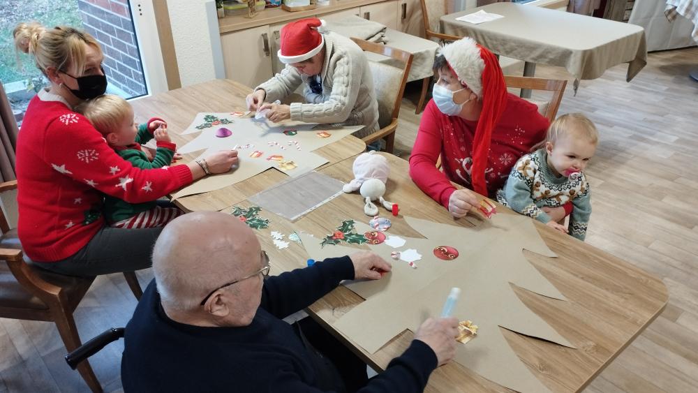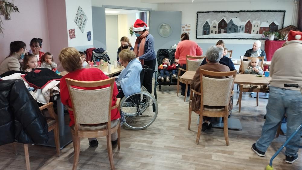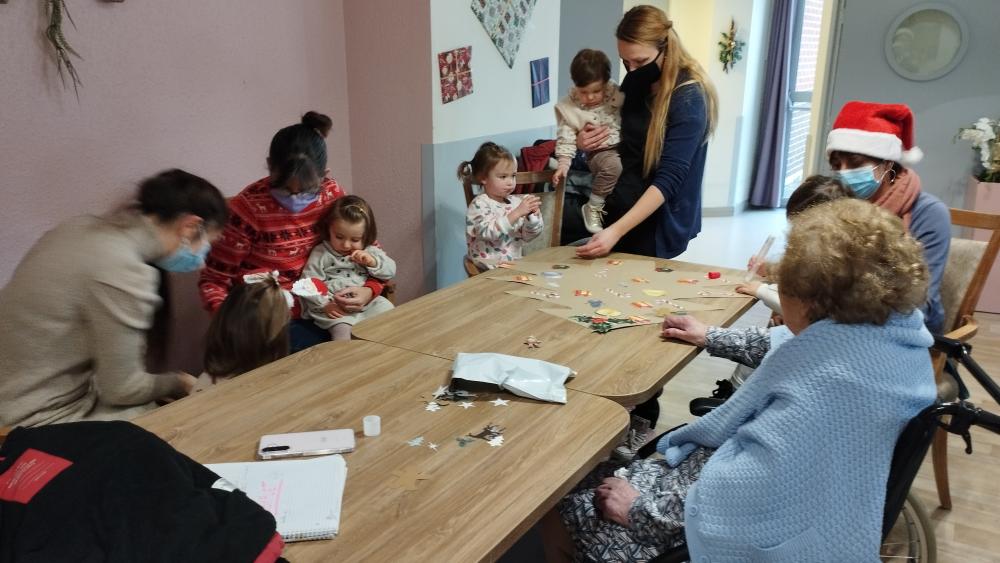 Ce jeudi matin quelques enfants accompagnés de leur nounou sont venus rencontrer les résidents. Une activité manuelle, collage sur sapin, partage d'une collation et chants de noëlAfficher la suite