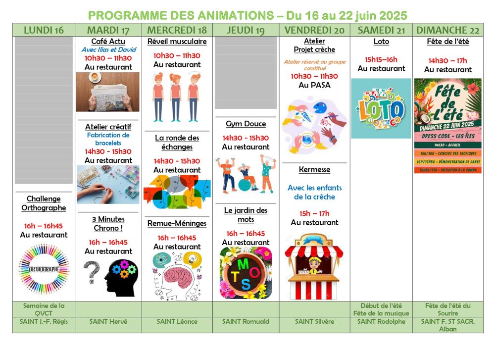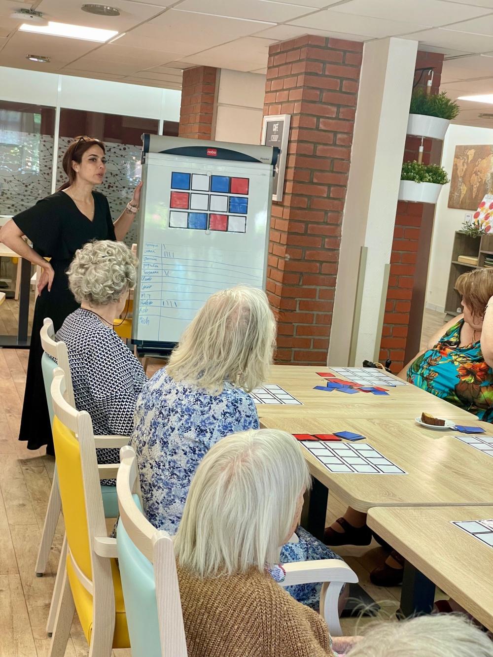 Entre mobilisation du corps et de l’esprit, les résidents ont participé à deux animations complémentaires ! Un atelier d'entraînement physique en vue des OlymHPAD du 25 juin, et une activité mémoire avec un Mémo’Cases. Une journée rythmée et stimulante pour garder la forme… et la tête !