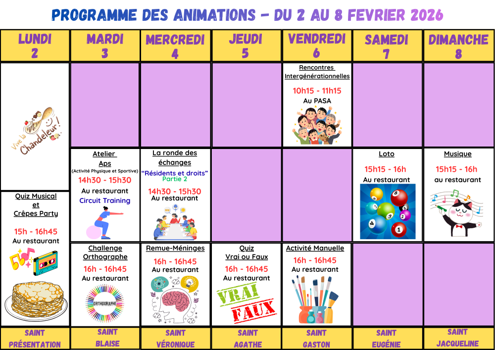 PROGRAMME DES ANIMATIONS – Du 2 au 8 février 2026