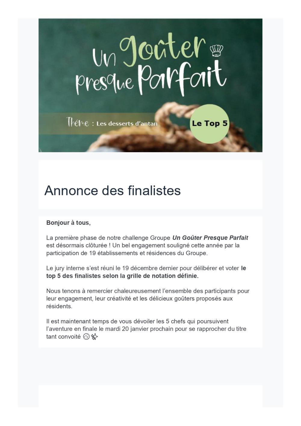 La Résidence Le Sourire a participé cette année au challenge Groupe – Un Goûter Presque Parfait.