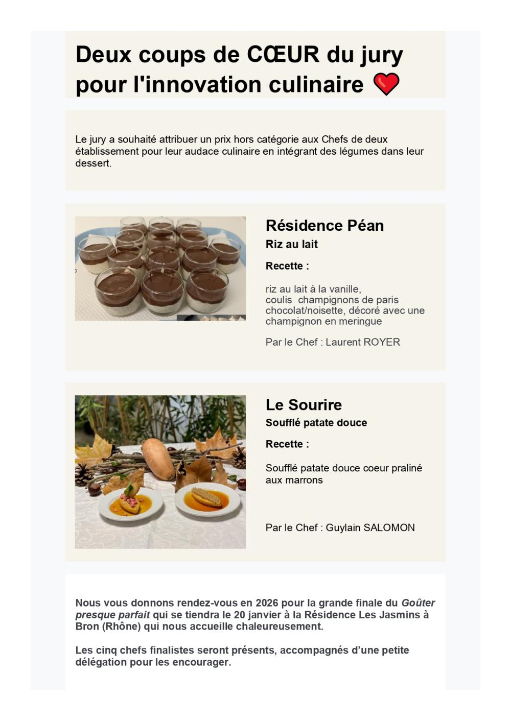 Ce prix récompense le travail et la créativité de notre chef Guylain, qui a présenté un dessert original intitulé « La Patate Embarquée ».