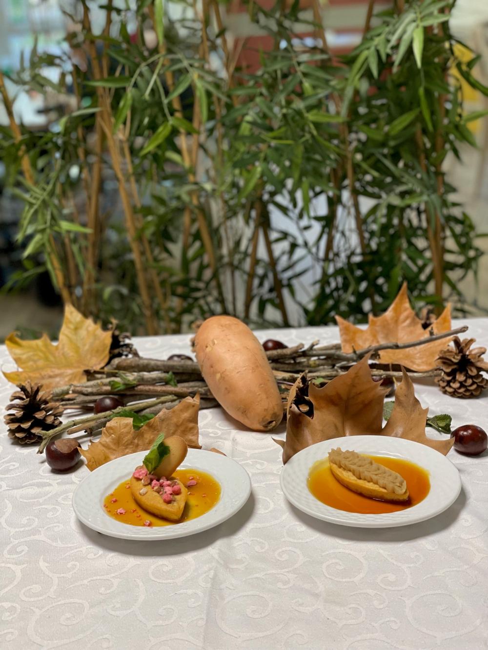 Il s’agit d’un soufflé de patate douce avec un cœur praliné aux marrons, à la fois doux, fondant et gourmand..