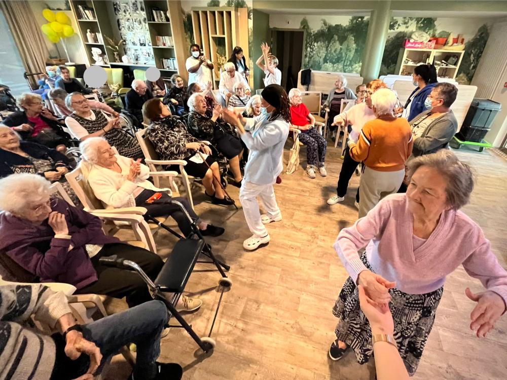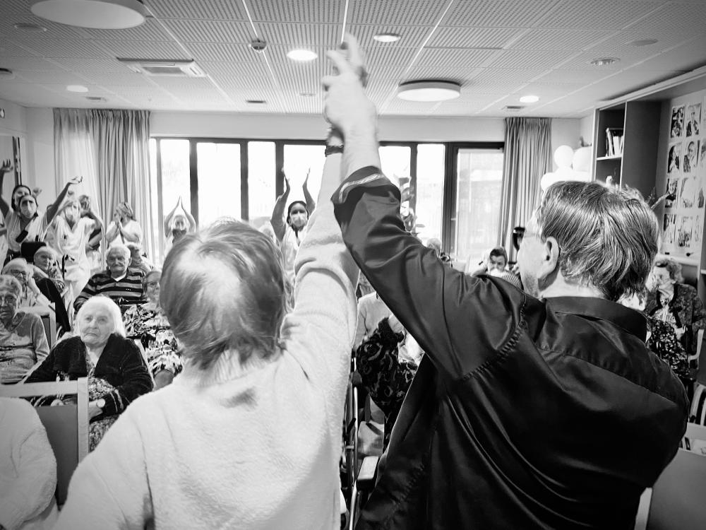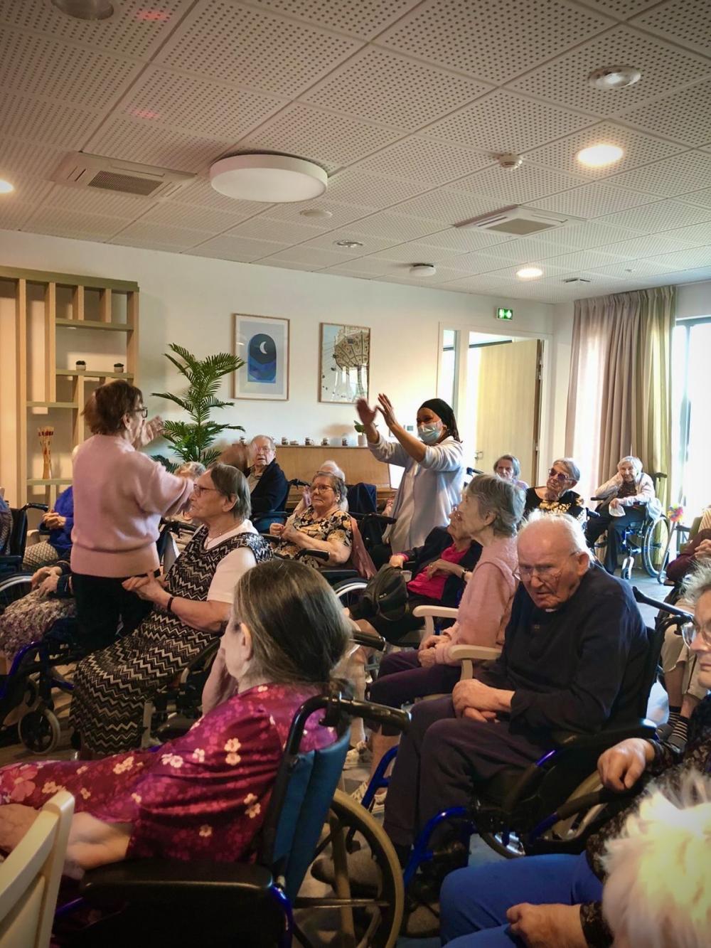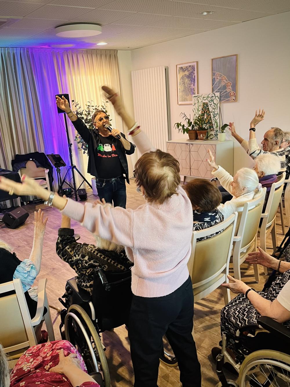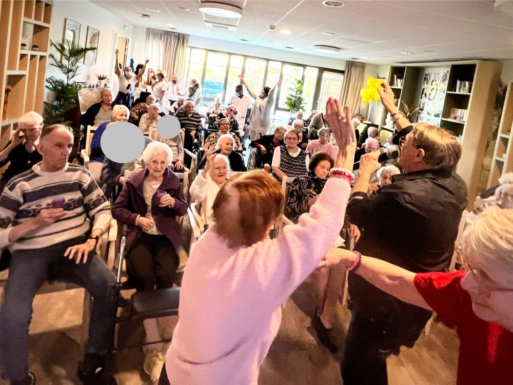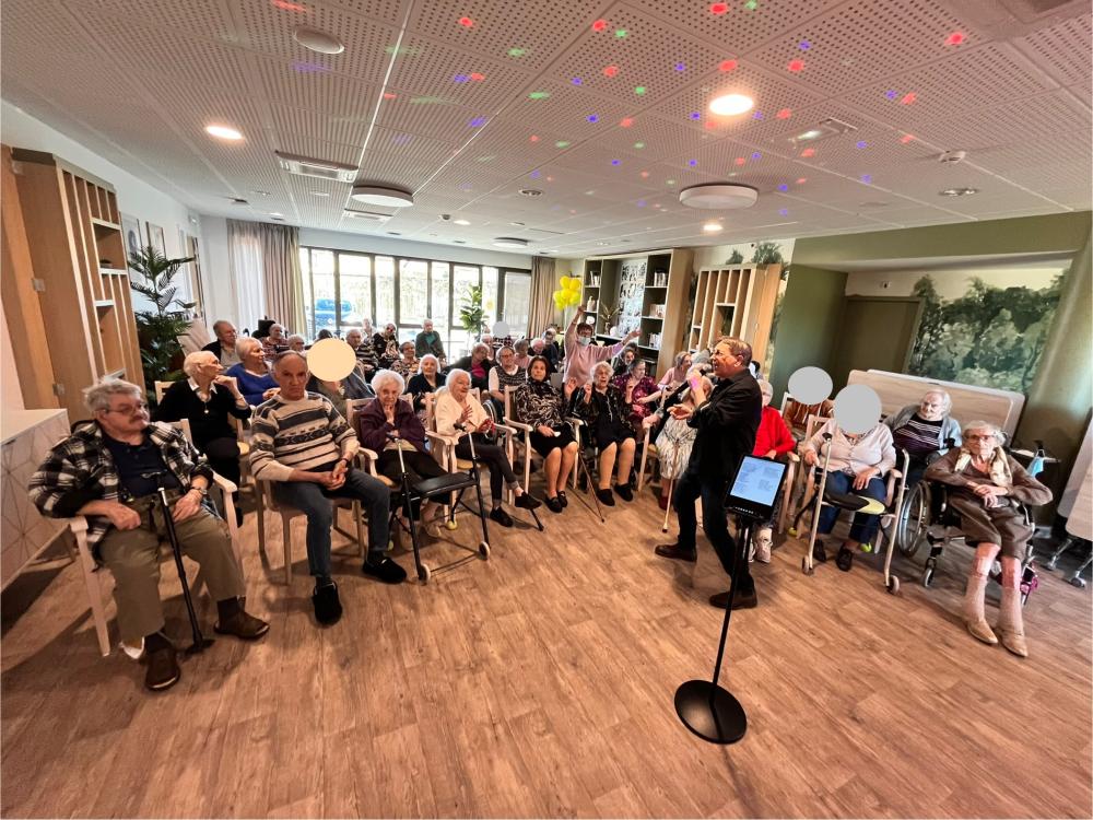 Jeudi 29 janvier, les anniversaires du mois ont Ă©tĂ© cĂ©lĂ©brĂ©s dans une ambiance festive Ă lâEHPAD. AccompagnĂ©s par le chanteur Roberto, rĂ©sidents, soignants et la cadre de santĂ© ont chantĂ© et dansĂ© ensemble. Un beau moment de partage, rempli de joie et de bonne humeur đ¶đ