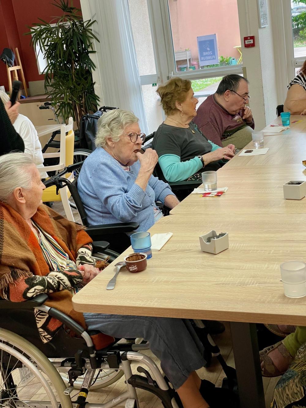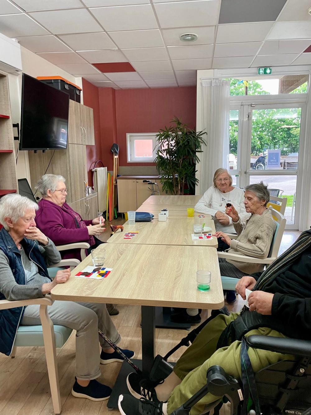 Les résidents ont participé à un atelier stimulant animé par l’association Les Miamies. Cette association a pour objectif de valoriser le rôle et l’utilité sociale de nos aînés vivant en maisons de retraite, en les impliquant dans des projets concrets portés par des entreprises, collectivités ou associations. L’idée est de créer du lien social et de rappeler à chacun qu’il a encore beaucoup à apporter à la société.