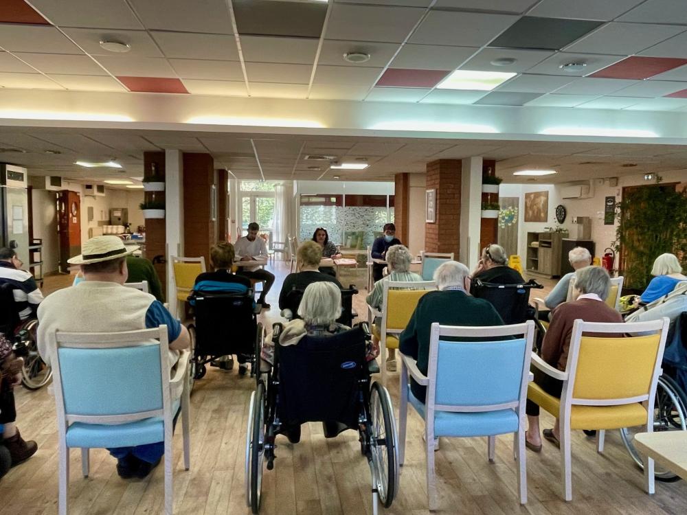 Cette rencontre a permis de faire le point sur les animations passées, d’échanger sur les envies pour les mois à venir, et de discuter autour des repas et des menus. Vincent a pu se présenter, écouter les retours des résidents, et partager quelques idées pour de futurs repas à thème.