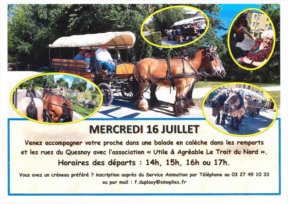 Mercredi 16 juillet c'est notre balade annuelle en calèche dans les remparts et rues du Quesnoy avec l'association Trait du Nord.