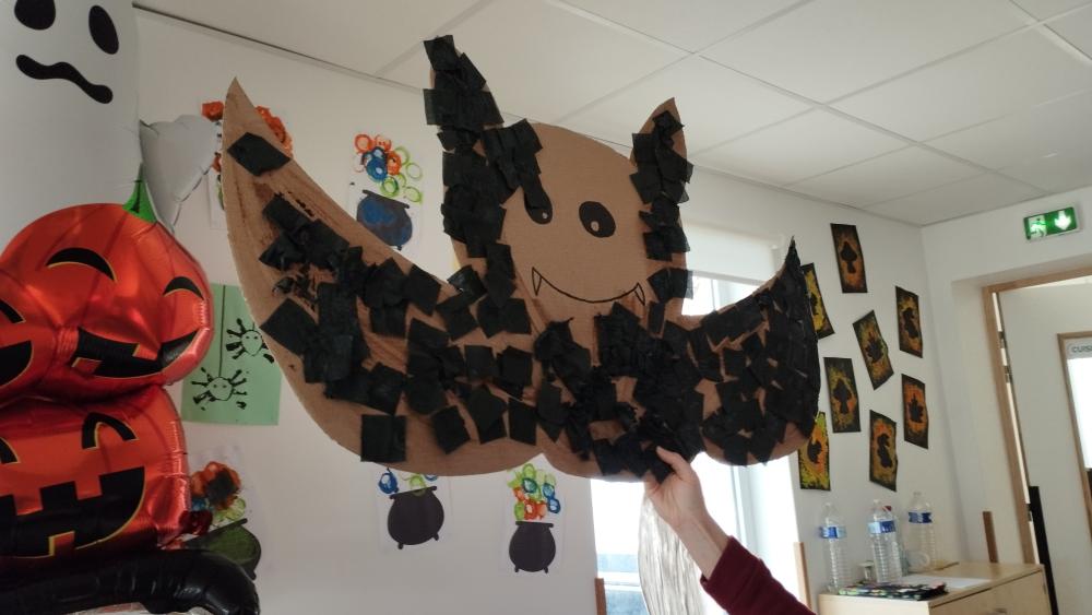 Rencontre mensuelle à la crèche de Wargnies-le-Grand... Halloween oblige.... Nous sommes revenus avec une chauve-souris géante... Beau travail..