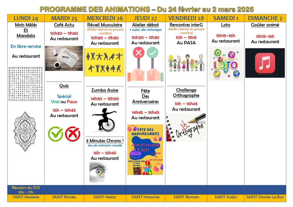PROGRAMME DES ANIMATIONS - DU 24 février au 2 mars 2025