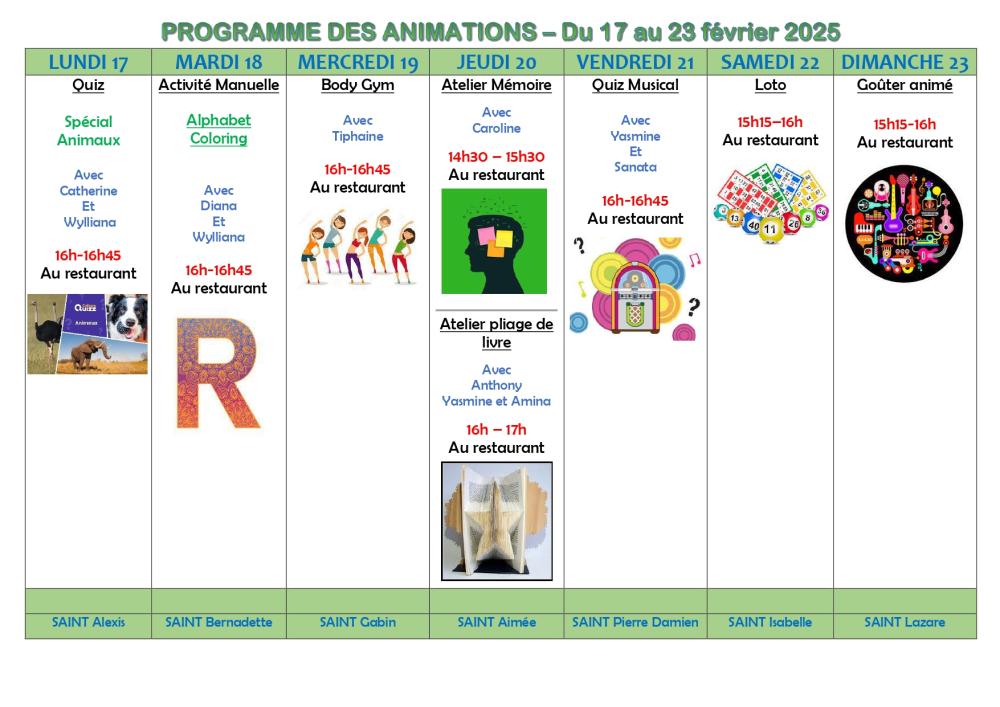 PROGRAMME DES ANIMATIONS - DU 17 au 23 février 2025