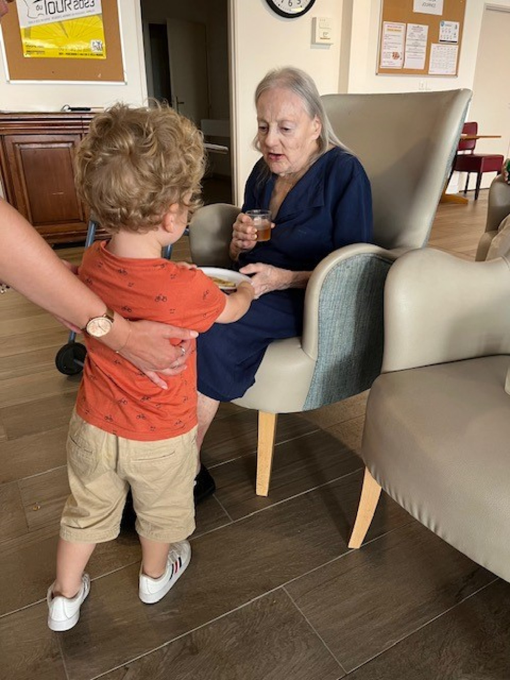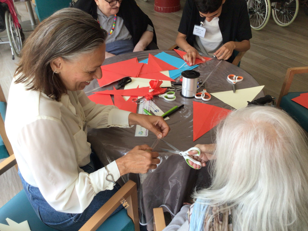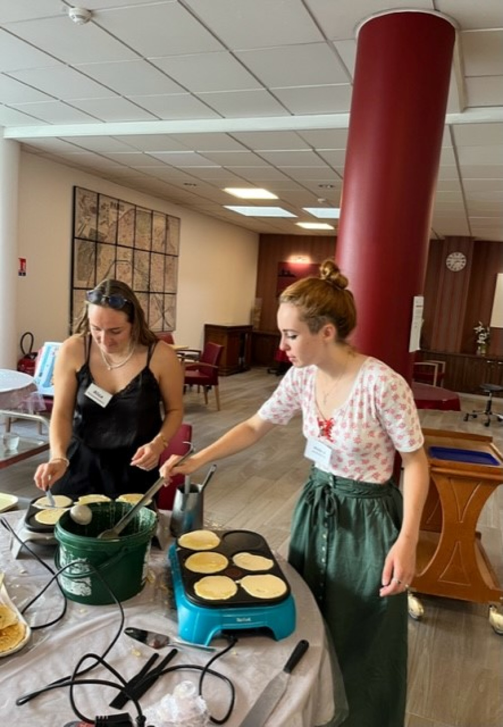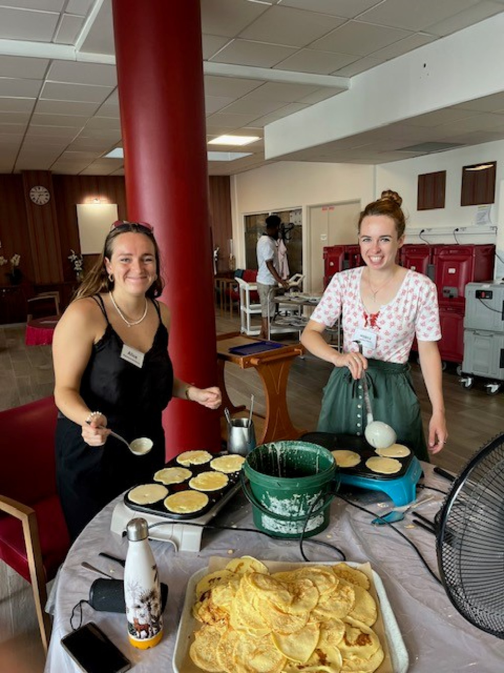 Ce mercredi 23 août, malgré la chaleur, nous avons fait revenir les crêpes à Péan, en compagnie des petits de la crèche, revenus de vacances. Pour éviter les désagréments que causent la chaleur, les crêpes sont directement venues aux résidents dans les étages avec un chariot. Pour les résidents présents au rez-de-chaussée, ce sont les enfants qui ont fait la distribution. Un grand merci à Nicole, Odile, Sandra et Benoit pour le garnissage, et Alice pour le coup de main à la cuisson !
