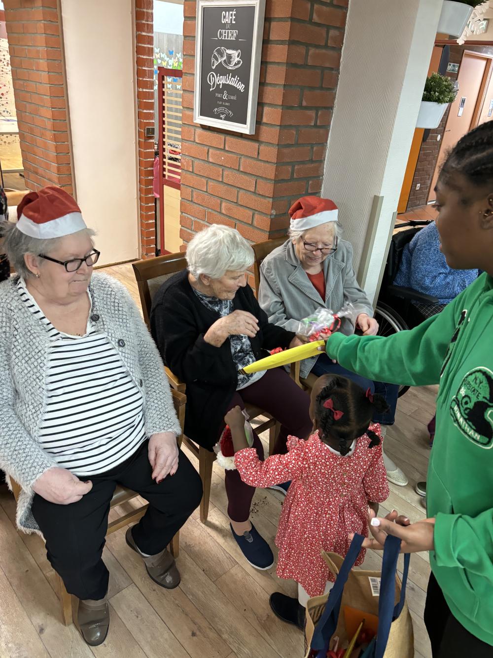 Ce moment d’échange a été encore plus spécial grâce aux cadeaux confectionnés par chacun. Les résidents ont pris plaisir à fabriquer de petites suspensions pour le sapin, pour les enfants, et les enfants ont également préparé des cadeaux pour les résidents. Une belle démonstration de solidarité et d’affection entre les générations.
