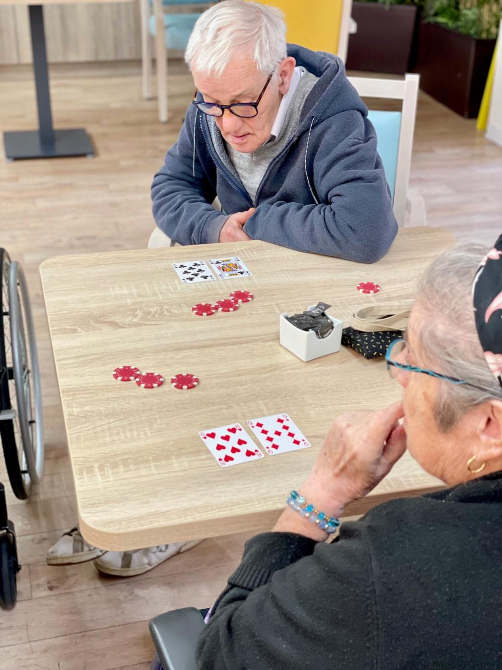 Cette semaine, nos résidents ont eu l’occasion de s’initier au poker lors d’un atelier. Dans une ambiance conviviale et détendue, ils ont découvert les bases de ce célèbre jeu de cartes : les règles, les mains gagnantes, et un peu de stratégie.