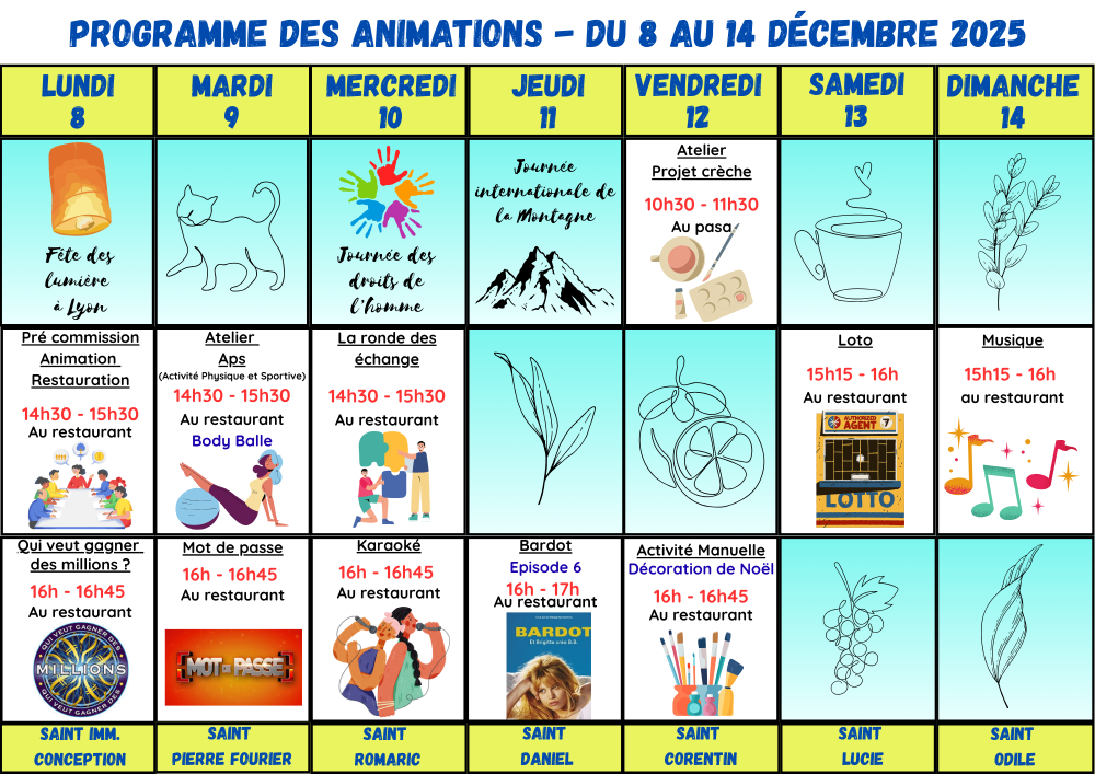 PROGRAMME DES ANIMATIONS – Du 8 au 14 décembre 2025
