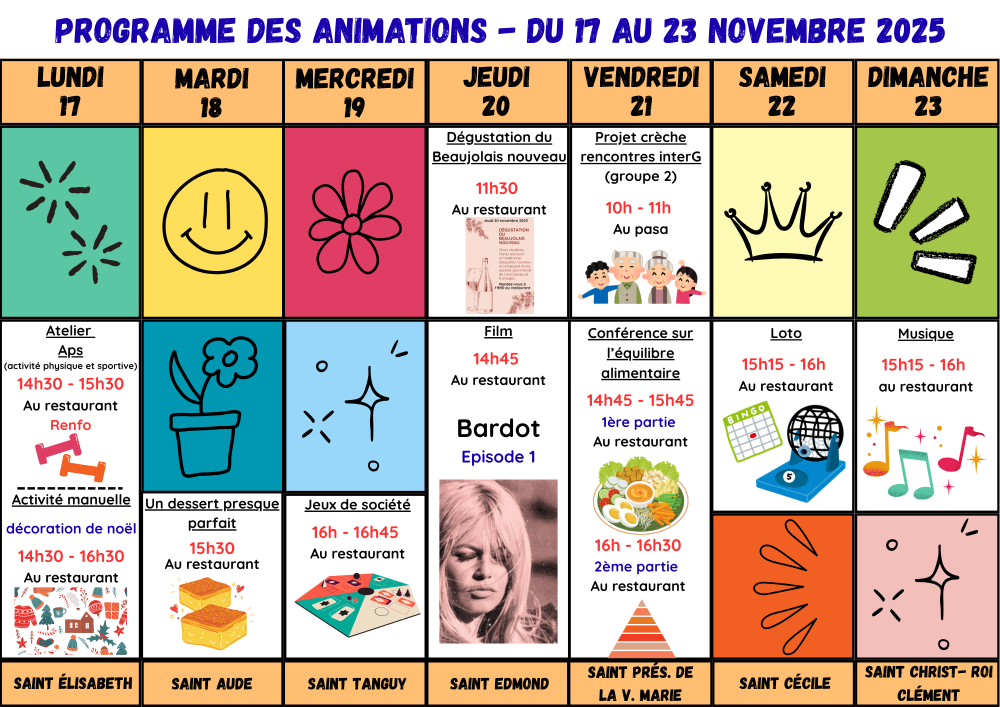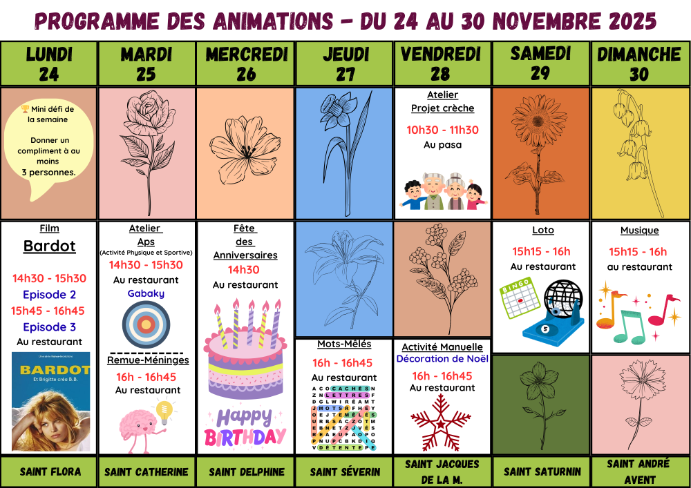 PROGRAMME DES ANIMATIONS – Du 24 au 30 novembre 2025