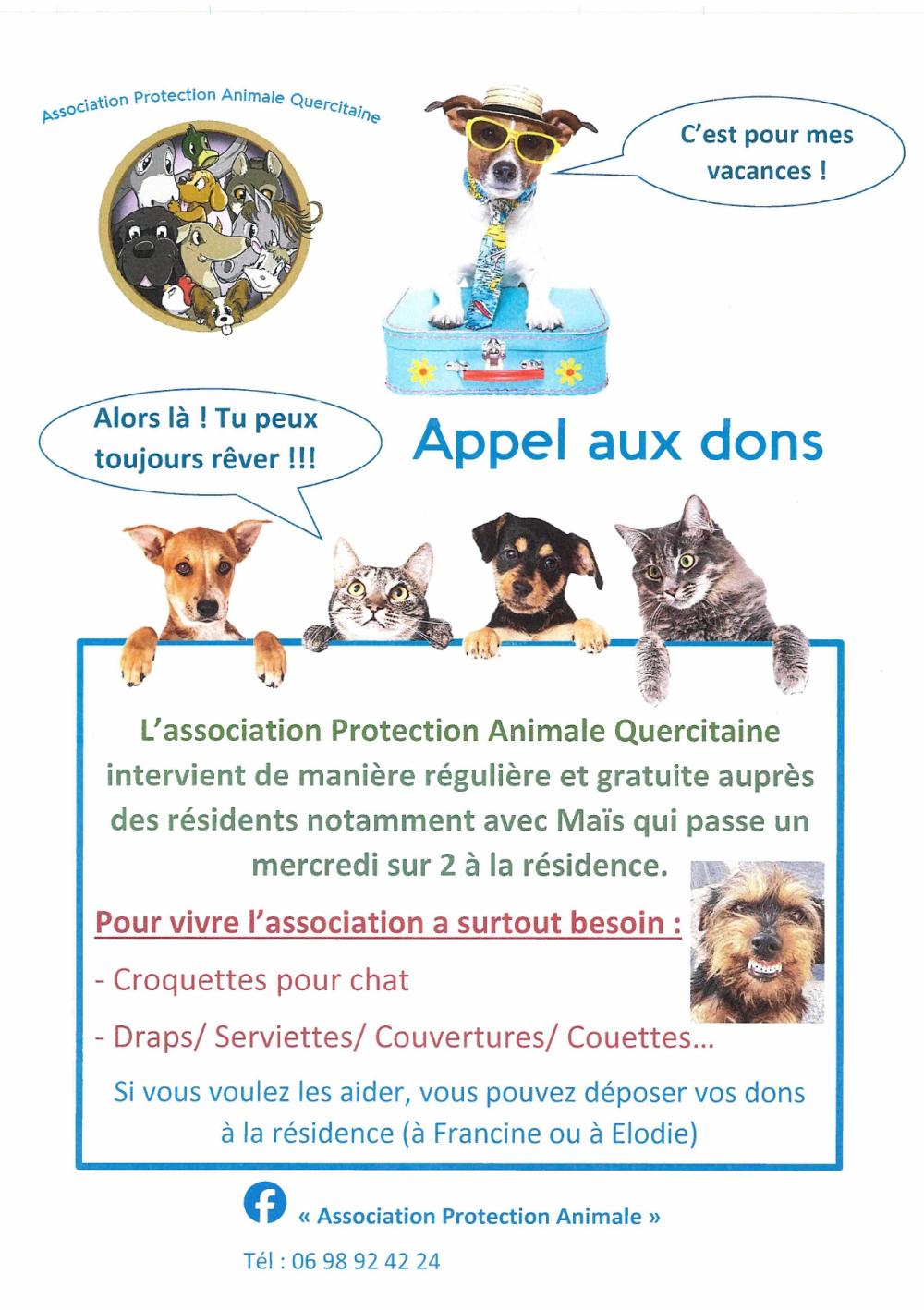 Dès ce mercredi 8 octobre et tous les 15 jours, Maïs de l'association de Protection animale Quercitaine passera sa journée à la résidence. Elle sera à la maison de campagne avecAfficher la suite