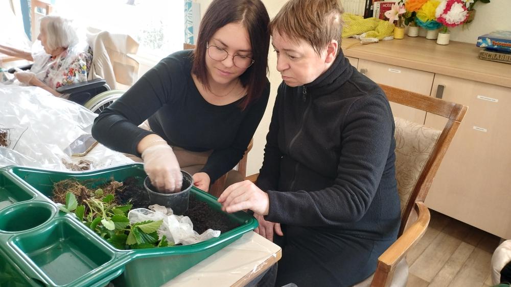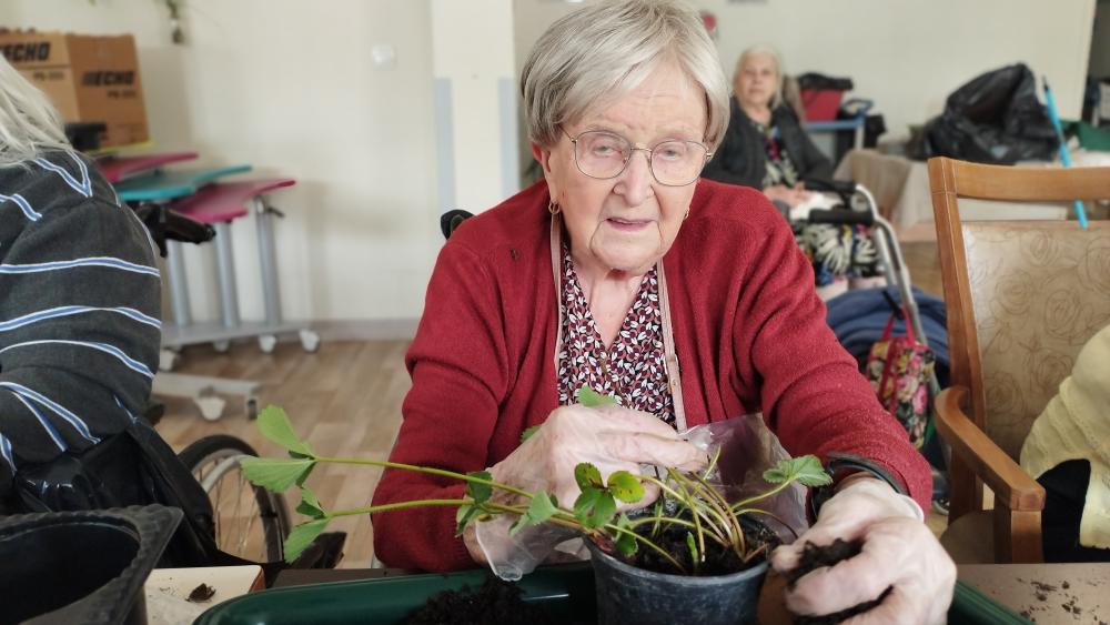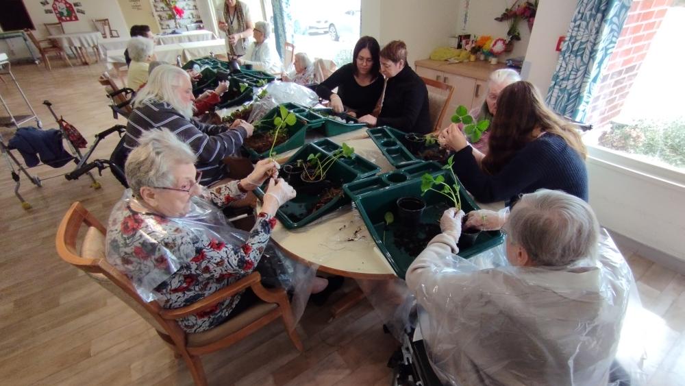 Chaque mois nous avons un atelier jardinage, après les semis vient le moment du rempotage. Cette fois nous avons aussi fait des bouturages de pieds de fraises.
