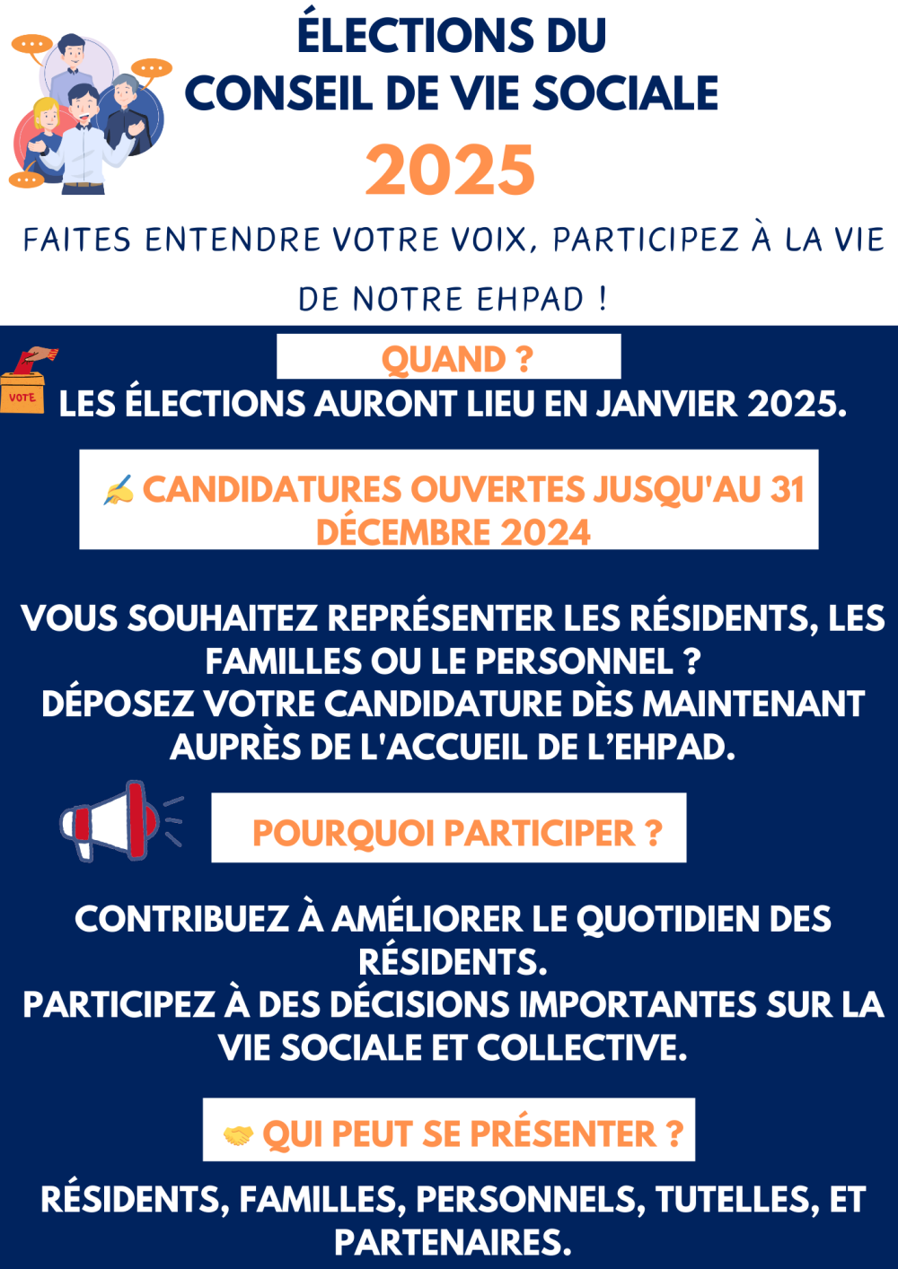 Le Conseil de la Vie Sociale (CVS) dans un EHPAD (Établissement d’Hébergement pour Personnes Âgées Dépendantes) est une instance représentative qui permet aux résidents, à leurs familles et au personnel de participer à la gestion de la vie collective au sein de l’établissement. Voici un résumé clair de son rôle et fonctionnement :