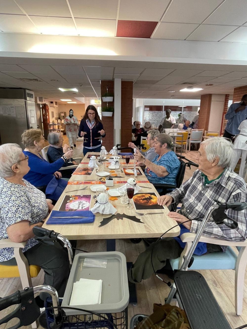 Le repas du midi était aux couleurs d’Halloween, avec des plats originaux préparés par l’équipe de cuisine. Pendant le déjeuner, les résidents ont écouté le contage de l’histoire des sorcières de Salem, un moment à la fois captivant et mystérieux.