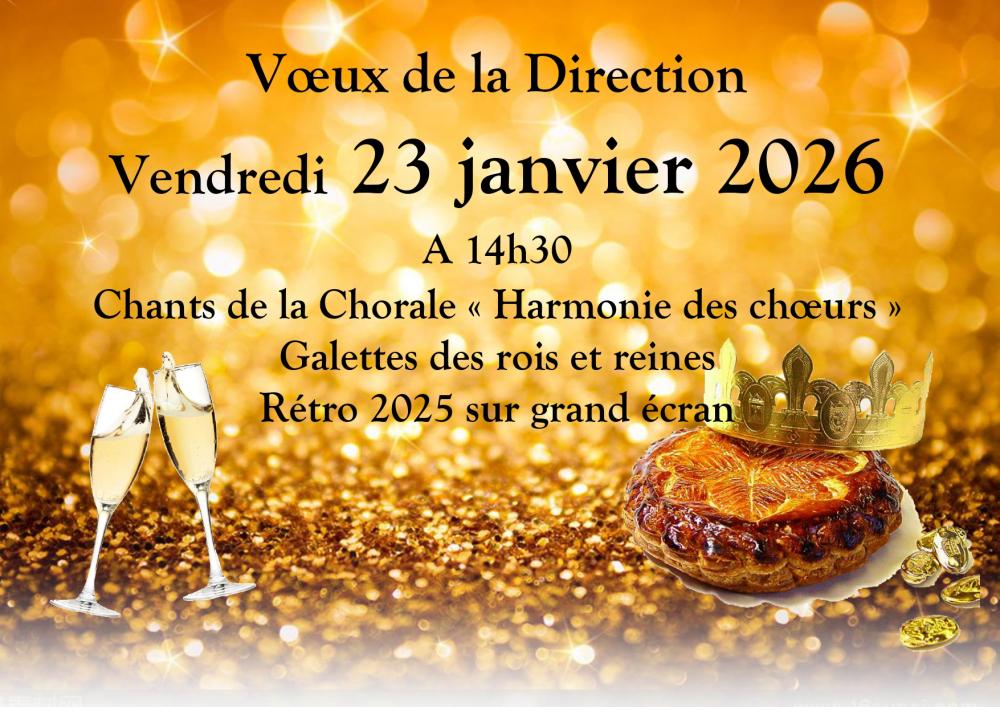 Vendredi 23 janvier, voeux de la Direction, chants de la chorale, Galette des rois et reines et rétro des évènements de 2025 sur grand écran.