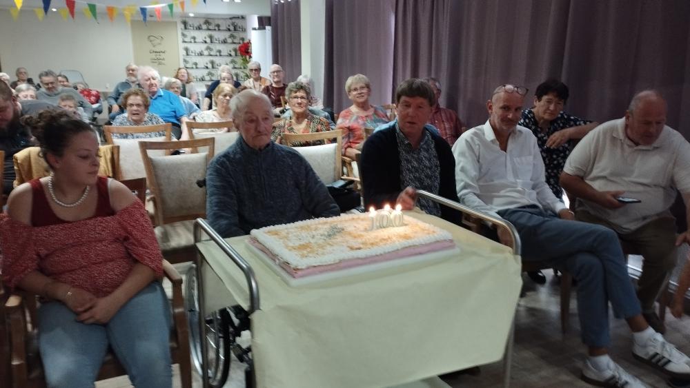 Nous avons fêté les 100 ans de Mr Moreau Adrien entouré de ses proches et des résidents. Quelques discours... Des cadeaux, un très bon gâteau, des bulles et le tout en musique, animé par Sweet Memories.