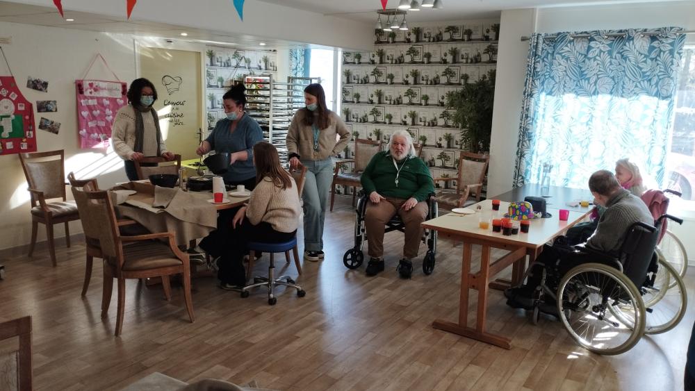 Mardi gras, atelier cuisine, crêpes et carnaval... le tout au son des chants du Carnaval de Dunkerque avant de se régaler des délicieuses crêpes préparées par quelques résidents.