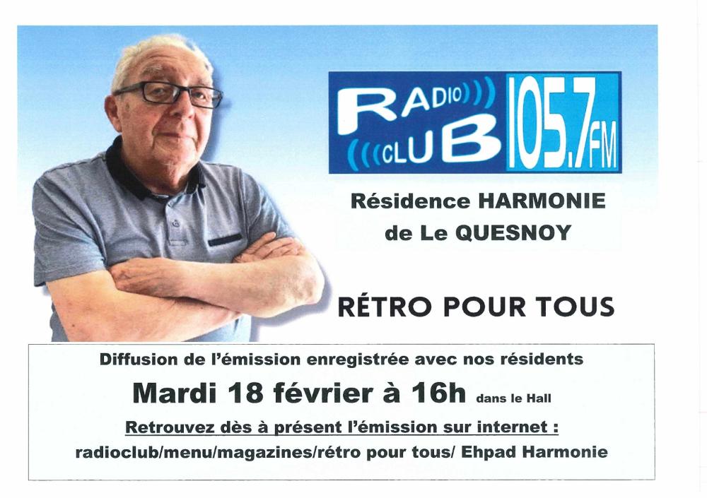 A écouter dès maintenant sur internet: radioclub/menu/magazines/retro pour tous/ Ehpad Harmonie
