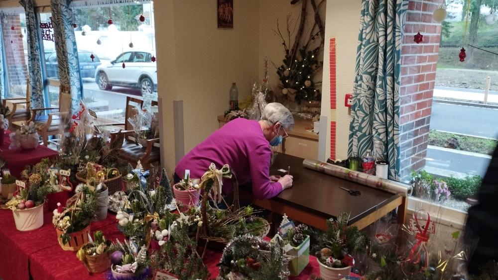 Comme chaque année, notre marché de Noël a eu lieu avec l'aide de nos bénévoles, Merci Raymonde, Isabelle, Marlise, Julie, Brigitte et Catherine sans qui nous n'aurions pas ces magnifiques créations. Un petit "espace Goûter" était à disposition des visiteurs et résidents pour déguster les douceurs parfumées de Noël.