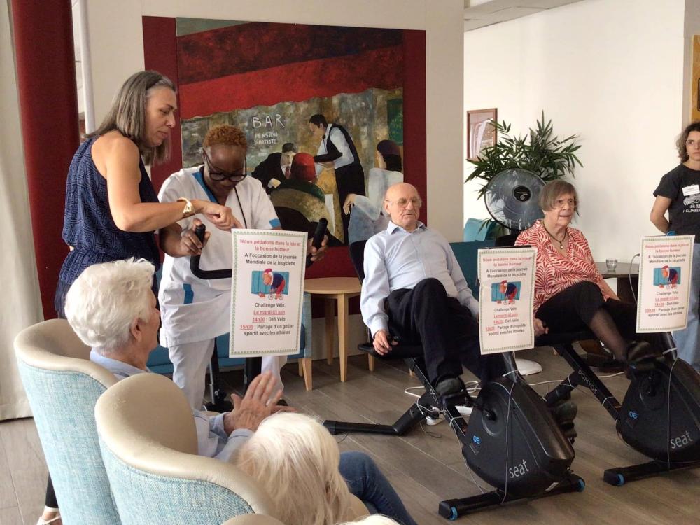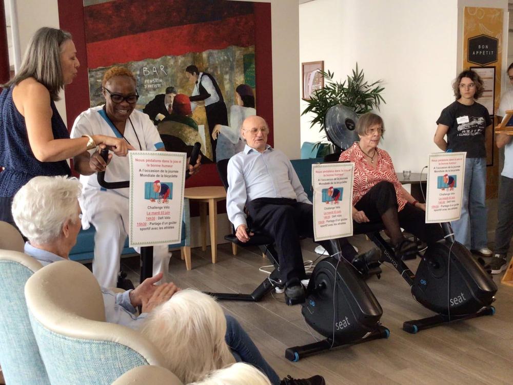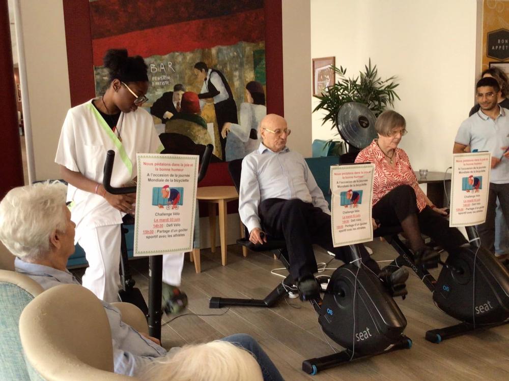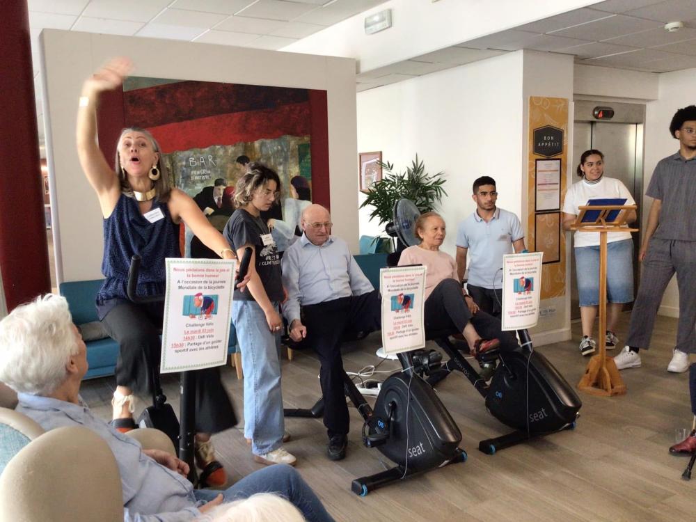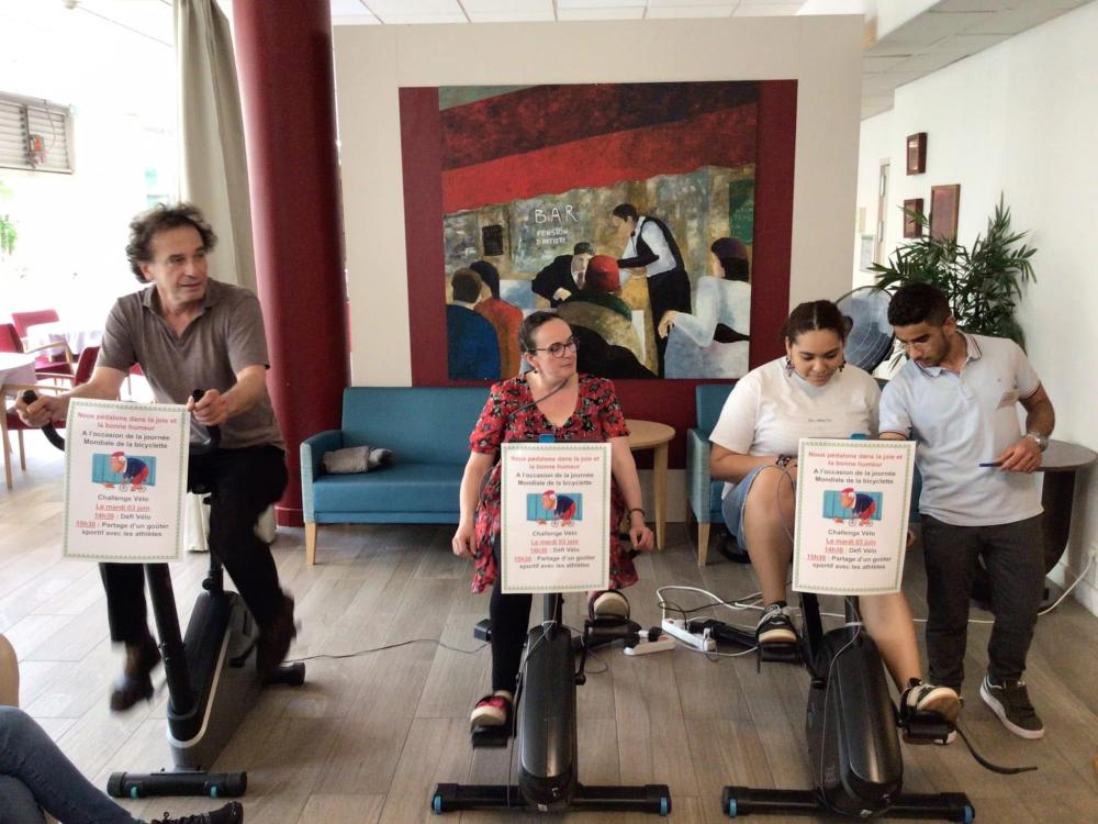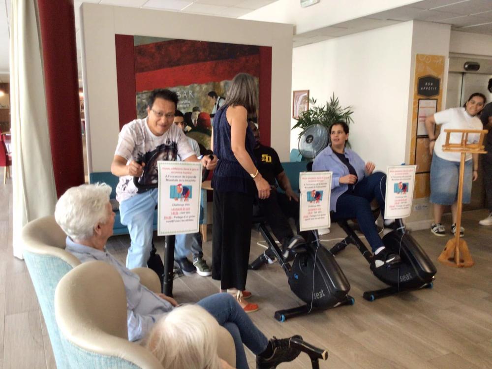 A l’occasion de la journée Mondiale de la Bicyclette, 10 résidents, 13 collaborateurs et 1 famille se sont relayés durant 1️⃣h0️⃣0️⃣ sur nos vélos connectés pour effectuer collectivement 5️⃣2️⃣ km 7️⃣0️⃣0️⃣ 📏 🧭🚲🏁