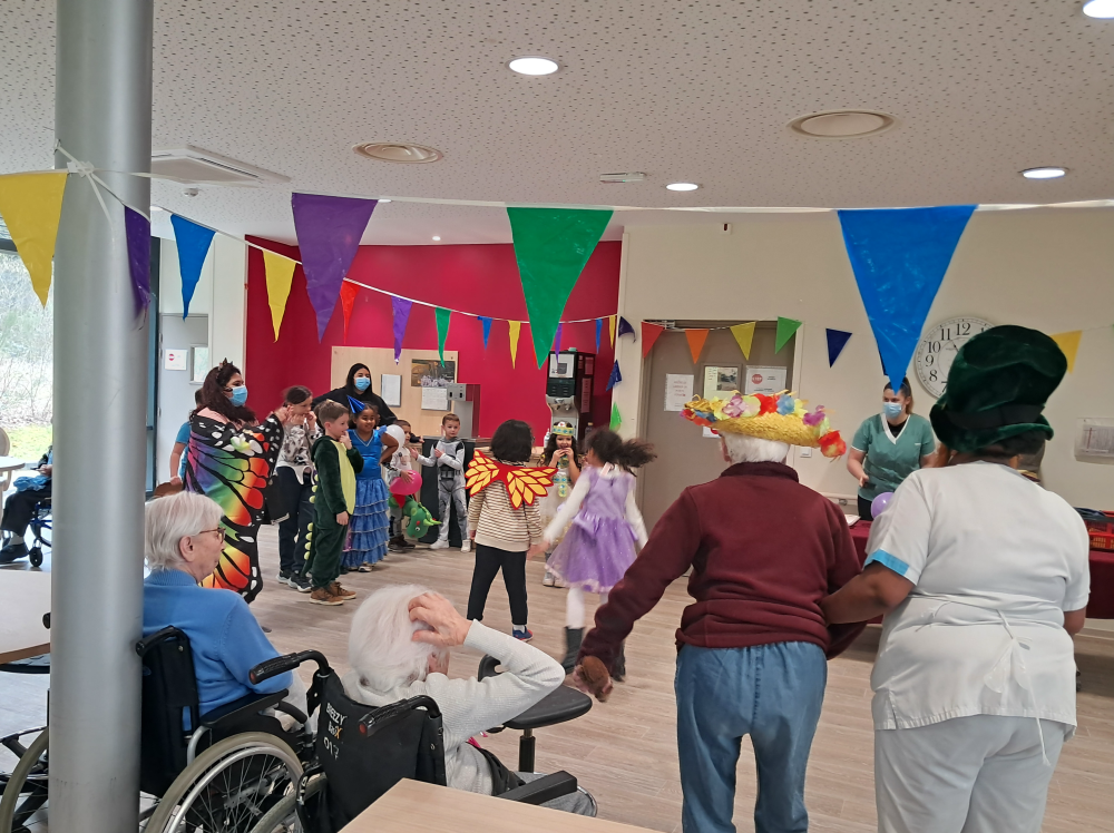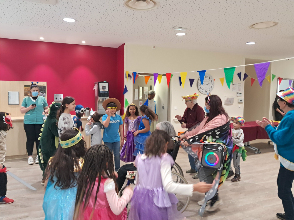 Le mardi 4 mars, les enfants du Centre de Loisirs, déguisés de la tête aux pieds, ont illuminé l’après-midi de nos résidents.