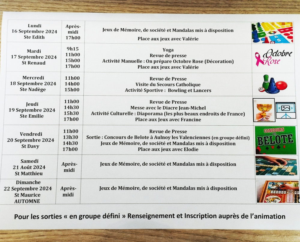 Vous aimez jouer à la Belote, concours inter-Ehpad vendredi 20 aux Heures Claires à Aulnoy les Valenciennes (renseignement auprès de l'animation).