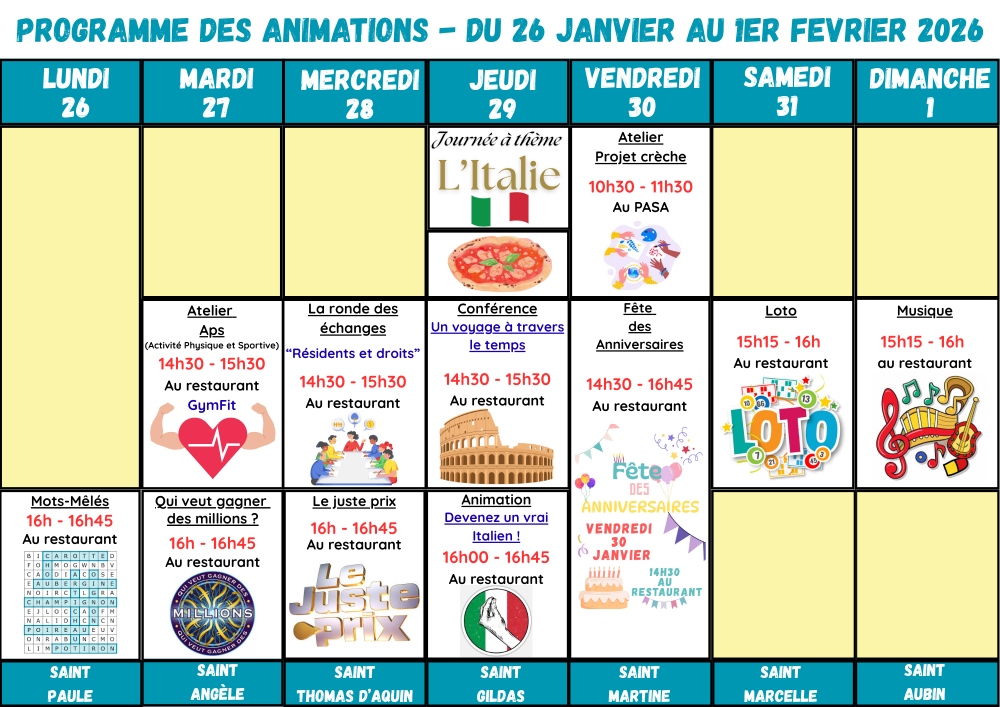 PROGRAMME DES ANIMATIONS – Du 26 janvier au 1er février 2026