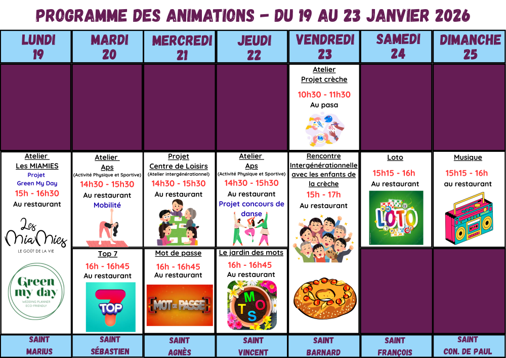 PROGRAMME DES ANIMATIONS – Du 19 au 25 janvier 2026