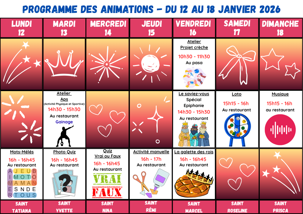 PROGRAMME DES ANIMATIONS – Du 12 au 18 janvier 2026