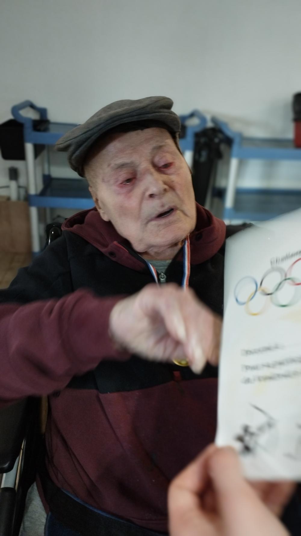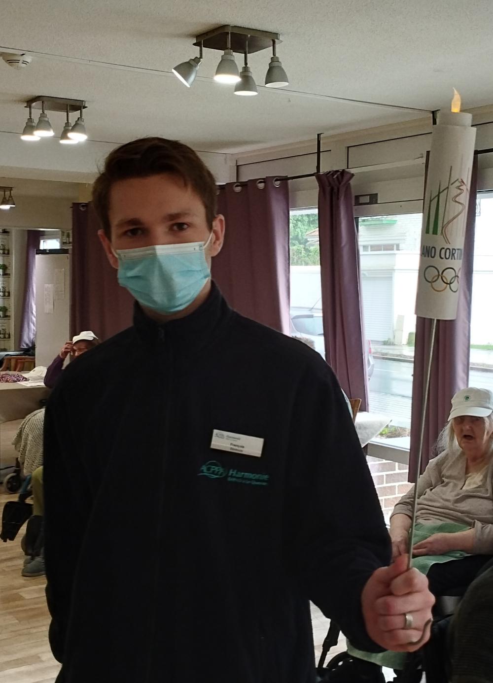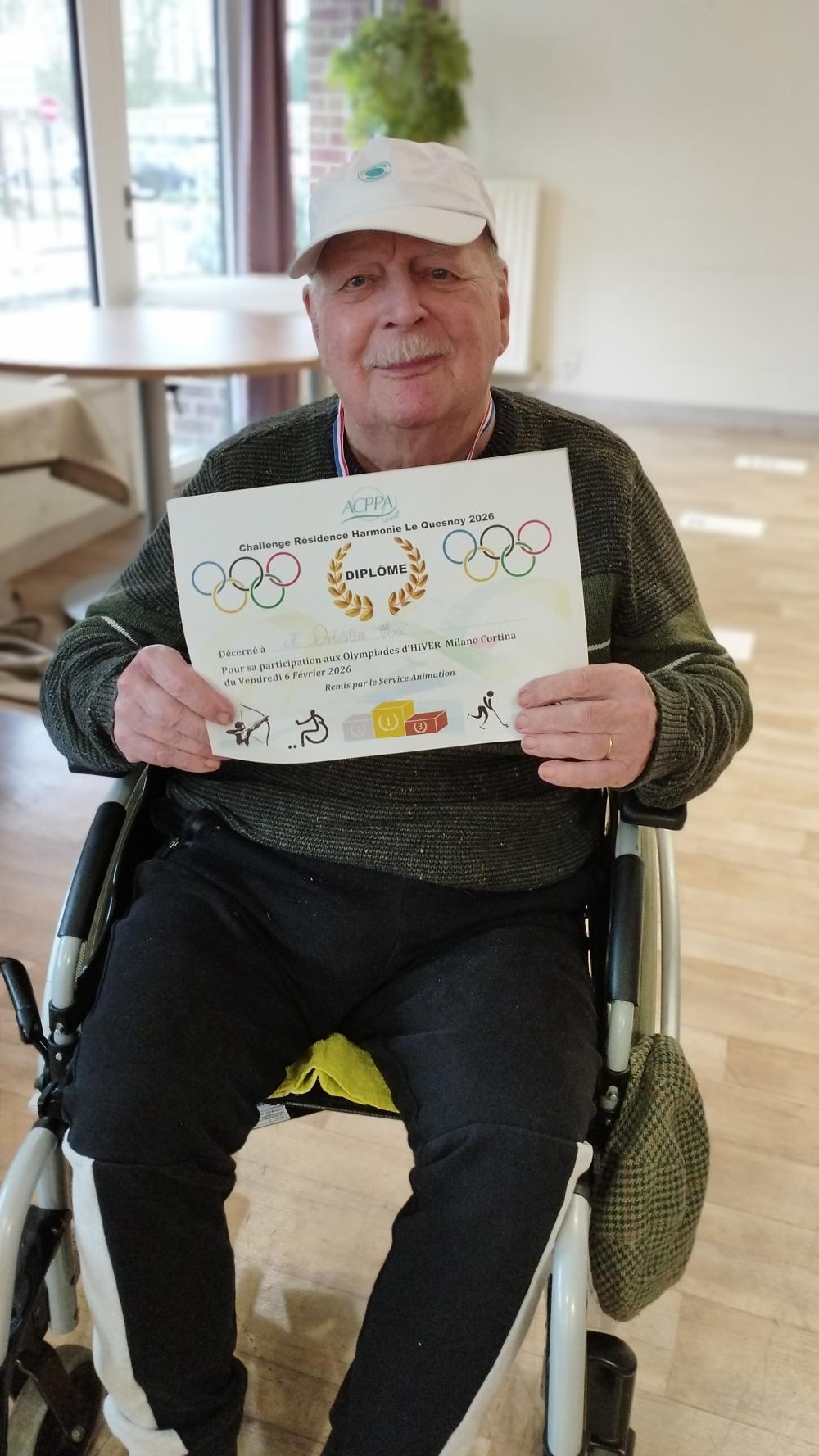 En ce jour d'ouverture des jeux olympiques d'hiver, nous avons fêté cet événement par des jeux adaptés. Remise de diplôme de de médaille, des casquettes... Des champions !🏅🏆️ François, bénévole nous a fabriqué une torche olympique.