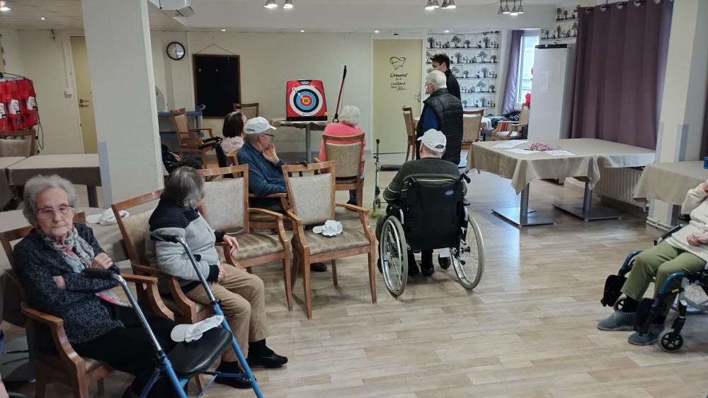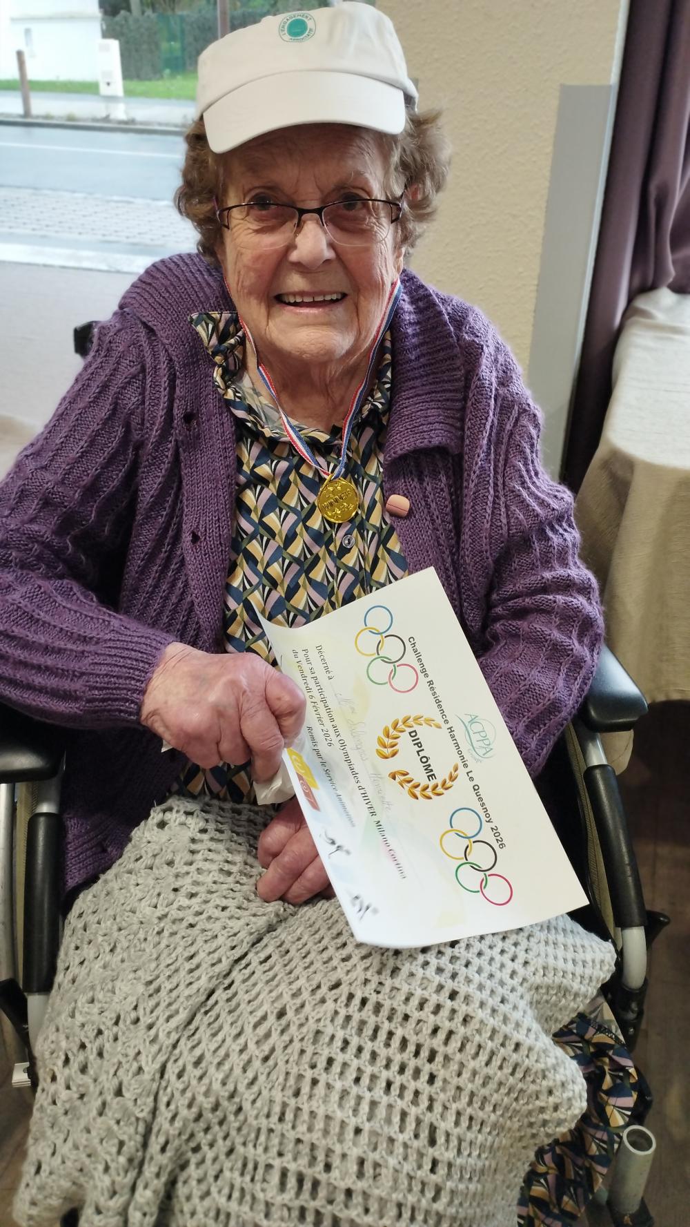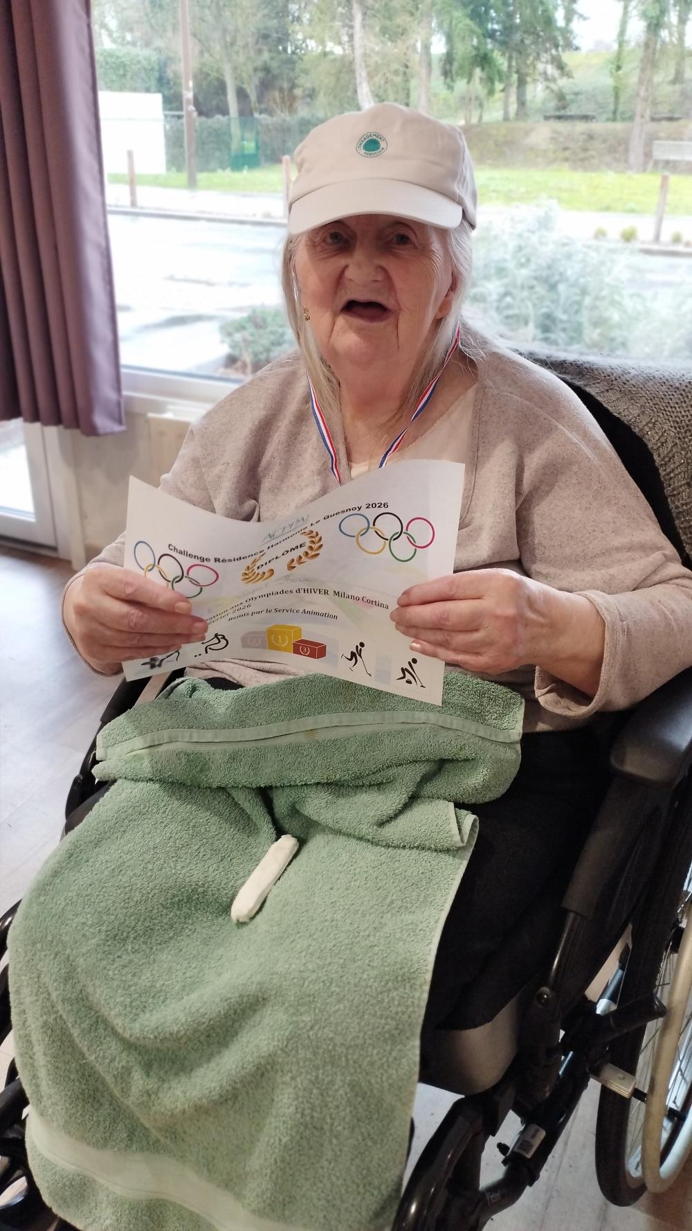 En ce jour d'ouverture des jeux olympiques d'hiver, nous avons fêté cet événement par des jeux adaptés. Remise de diplôme de de médaille, des casquettes... Des champions !🏅🏆️ François, bénévole nous a fabriqué une torche olympique.