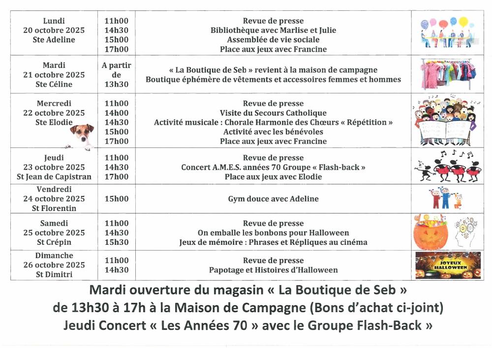 Mardi 21 La Boutique de Seb à la Maison de Campagne (bons d'achat avec le planning papier)