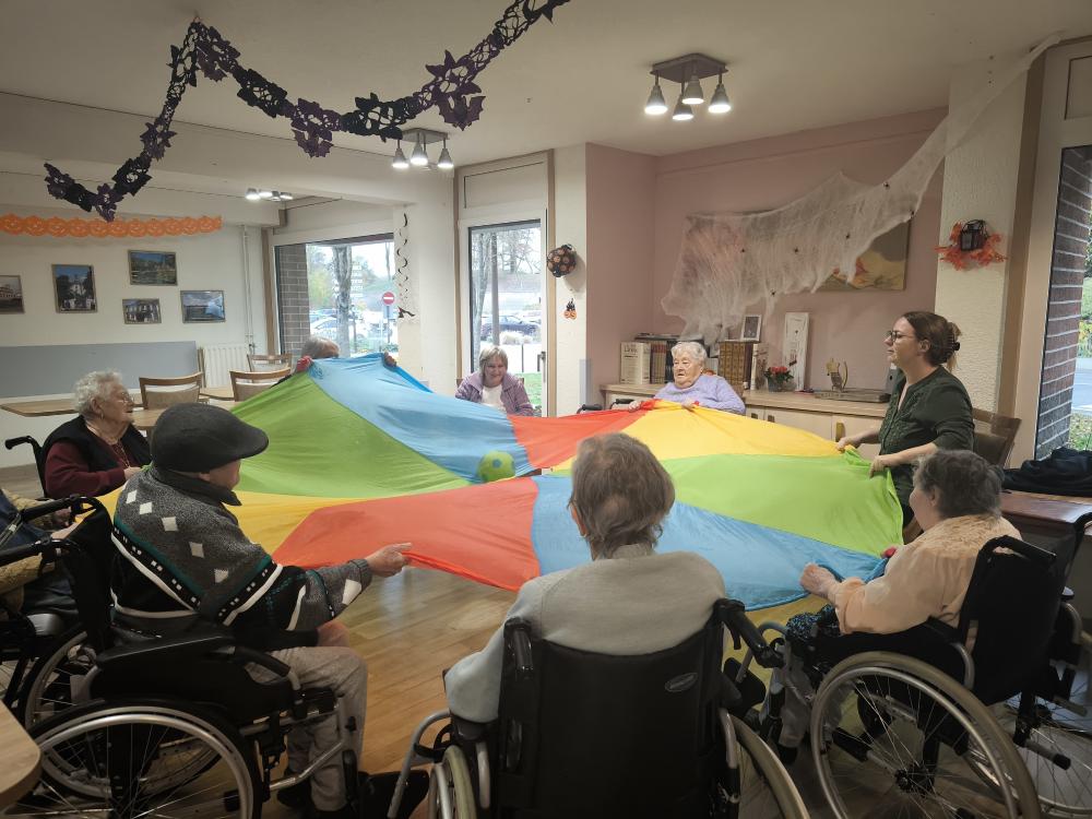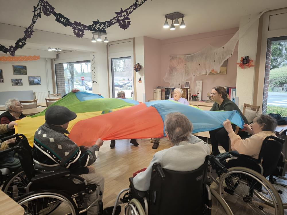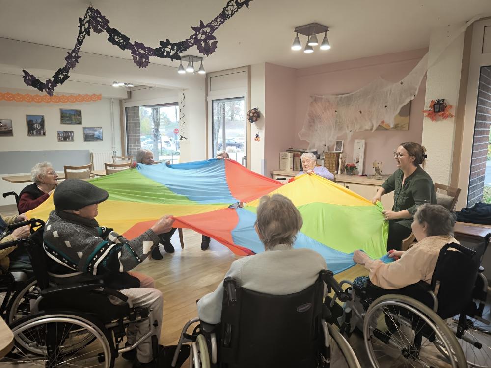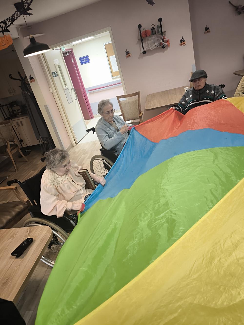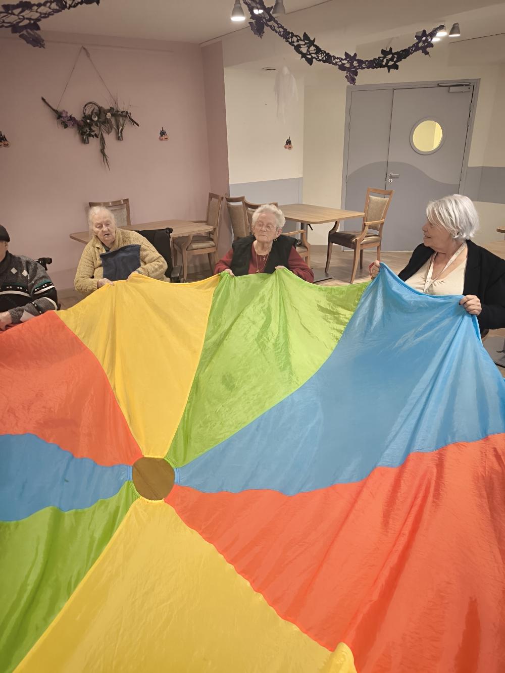 Après un bon échauffement articulaire et musculaire, place au jeu du parachute ! Celui-ci est un jeu coopératif qui permet aux résidents de travailler la motricité, l'attention et laAfficher la suite